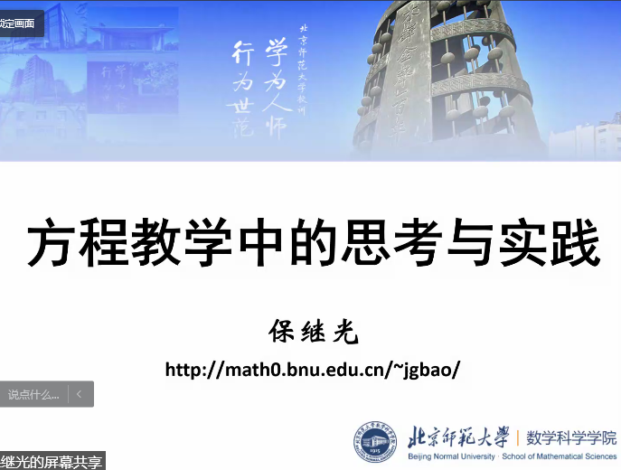 保继光教授作了题为《方程教学中的思考与实践》的专题讲座,围绕本科偏微分方程课程设置情况、课程及教材的整体设计、应用偏微方程的建模教学片段展示三个方面展开讲座,详细介绍课程改革的做法及实践,提出“下有底线、上不封顶”的教学理念,并且介绍了申报国家一流课程申请书的撰写规范和注意事项。