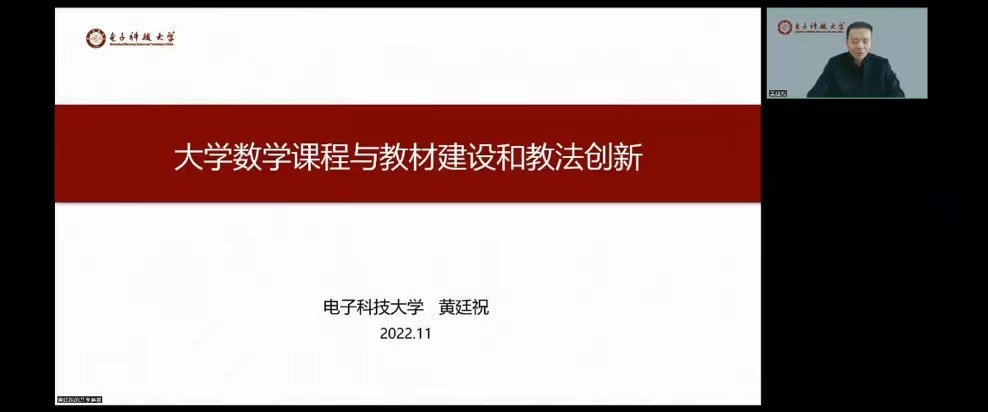 黄廷祝教授以“大学数学课程与教材建设和教法创新”为题,从适应一流人才培养,大学数学教学改革创新、教材改革创新和配套教学资源建设、关于教法以及课堂教学、关于数学类专业新型研究性课程建设等四个方面展开。黄廷祝教授在报告中解释了大学数学教学极其重要的原因,强调在教学过程中教师对知识的讲解要深入浅出,同时要注重对员工研究思维的培养;他以线性代数课程为例,分享了他围绕教材内容体系在教材建设上进行的改革创新;最后他谈及了教学资源的使用方法,分享了他在教法、课堂教学、课程建设等方面的宝贵经验与成果。